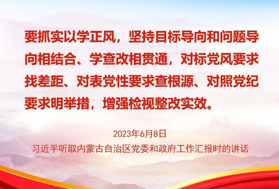 2023年6月,习近平在内蒙古考察时强调,通过集中教育推动全党以自我革命精神解决党风方面的突出问题,是一条重要历史经验。人民群众看主题教育是否有成效,最直观的感受是看党风方面存在的问题是否得到解决、党员干部作风是否有明显进步。