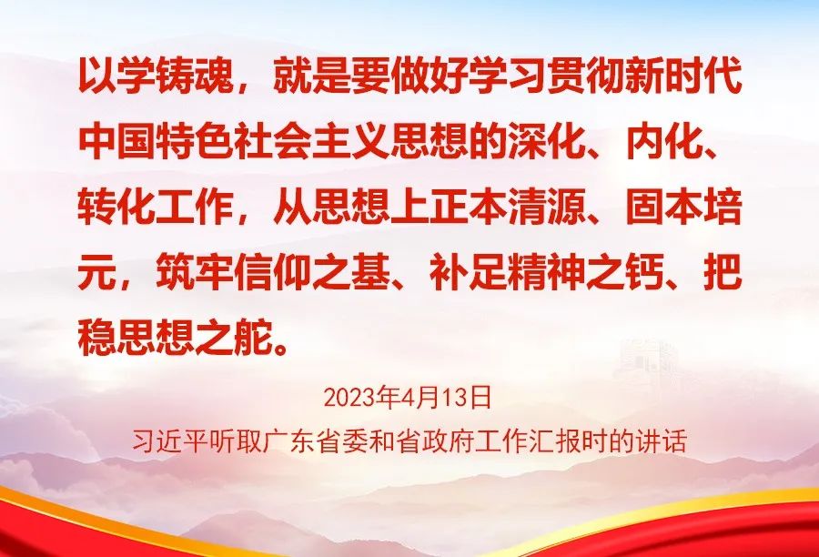 2023年4月,习近平总书记在广东考察时指出,开展主题教育是今年党的建设的重大任务。各级党组织要坚决贯彻落实党中央的工作部署,教育引导党员、干部在以学铸魂、以学增智、以学正风、以学促干上下功夫见实效。